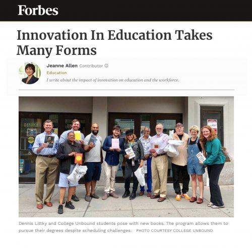 College Unbound pays close attention to the needs of the student. “We meet at night, when students can meet. There’s always food there. There’s always babysitting there. You might think that’s stupid and little, but it allows them to be there,” Littky said. This makes sense, of course, if you’re trying to help adults complete their education. We all know the smallest of challenges can keep you from the most important endeavors. Just think how hard it is to get to the grocery store or the gym when you have kids or a job!