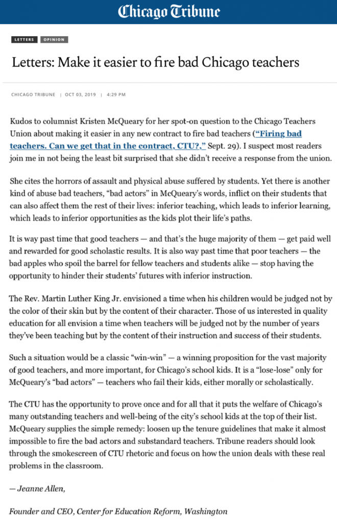 CER is the only national organization that consistently - for TWENTY-SIX YEARS THIS WEEK! - challenges conventional wisdom and forcefully advocates for transforming the way we do education. We don’t simply weigh in on whether it’s right to negotiate. We take our battles and our credibility to the public, to lawmakers and to the media. That’s how we changed the education landscape to have the first charter and choice laws, and it’s how we will change policy so that all teachers who want to teach and achieve success in modern schooling will be the most capable and highest paid public employees we have.
